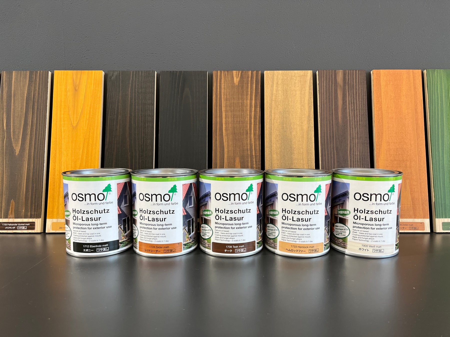 これまで、多くのお客様にオスモカラー外装用木材保護塗料ウッドステインプロテクターをご愛用いただいてまいりました。このたび、長年弊社が培ってきた経験と知見を基に、日本の建築や周囲の環境により一層調和する仕上がりを追求した結果、新たに「つや消し」タイプを販売する運びとなりました。