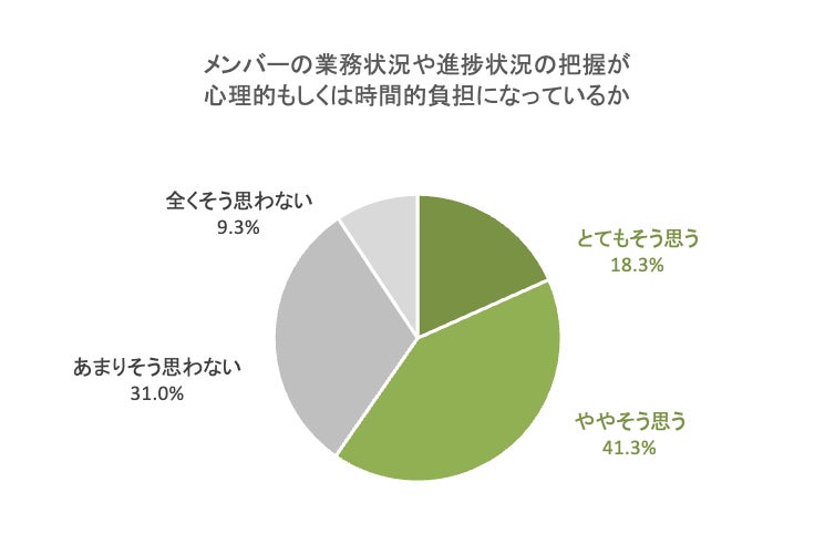 第1回目の調査でも、管理職の約9割が「メンバーの業務把握が重要だ」と思っている一方で、「メンバーの業務把握が心理的もしくは時間的負担になっている」と感じる管理職は約6割にのぼることがわかっています。