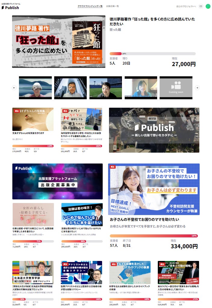 Publishは、何かを書きたい・表現したい人が集まる、出版に特化した出版支援プラットフォーム/クラウドファンディングサービスです。
