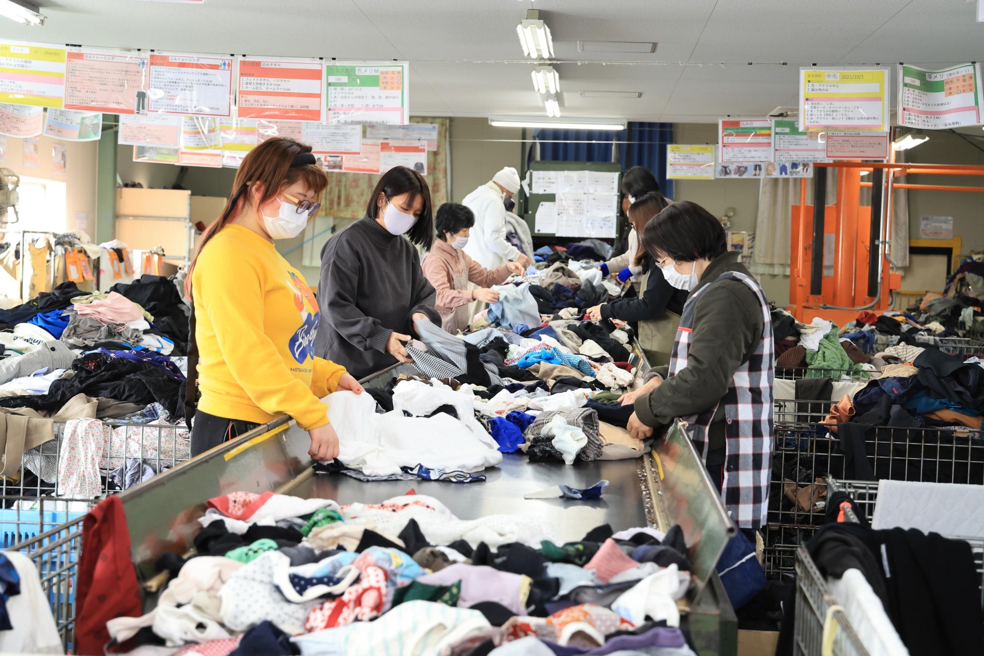回収された古着は、丁寧に仕分けされ、工業用の雑巾(ウエス)や自動車部品のフェルト原料として再利用されます。