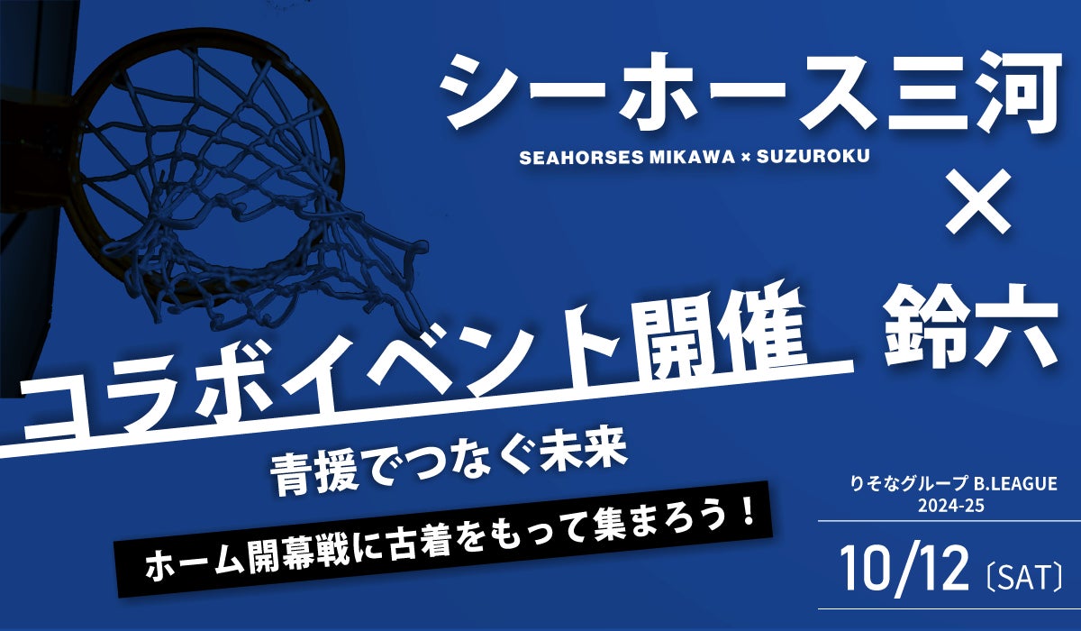 【シーホース三河 × 鈴六】三河で衣類の循環イベント開催!ホーム開幕戦に古着をもって集まろう!