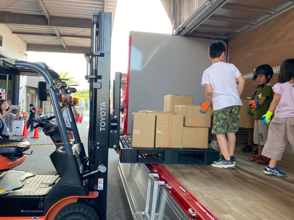 当日は3年前の実施以来過去最多となる39名の親子にご参加いただき、子ども用のミニサイズトラックの運転、物流の仕組みを学べる座談会、フォークリフトの操作体験、大型トラックの乗車体験などを実施しました。