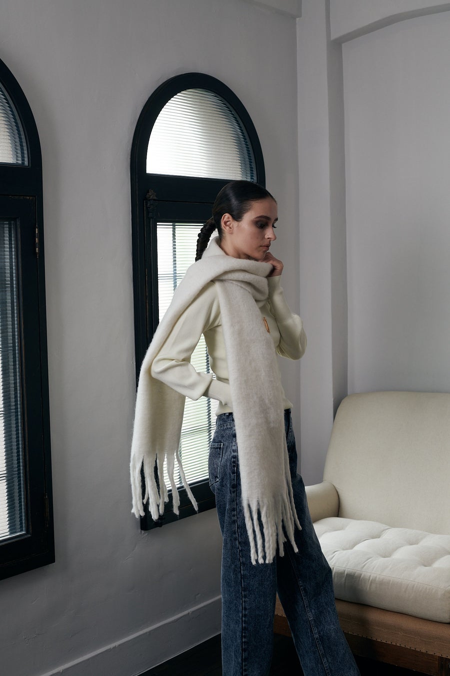 セオドリックディのシンボルとなるmotif 刻印された大判マフラーをご購入特典として