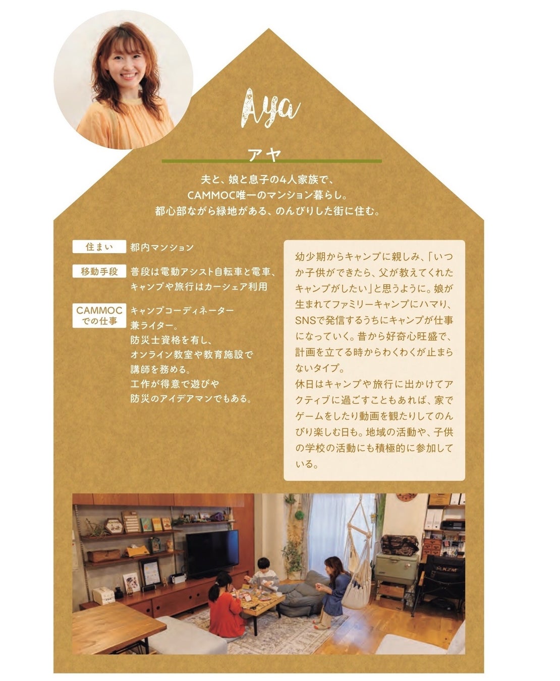 マミ、カナ、アヤの3人のママキャンパー。防災士やキャンプインストラクターの資格を有し、「キャンプのある暮らし」をテーマに地球の未来を創造する会社を運営する。キャンプ歴はそれぞれ20年以上。自分に合う暮らしや防災を探求し、キャンプを通して無理なく無駄なく楽しみ続ける防災法を提唱するほか、テレビ・ラジオ出演、執筆やイベント登壇など、幅広く活躍する。