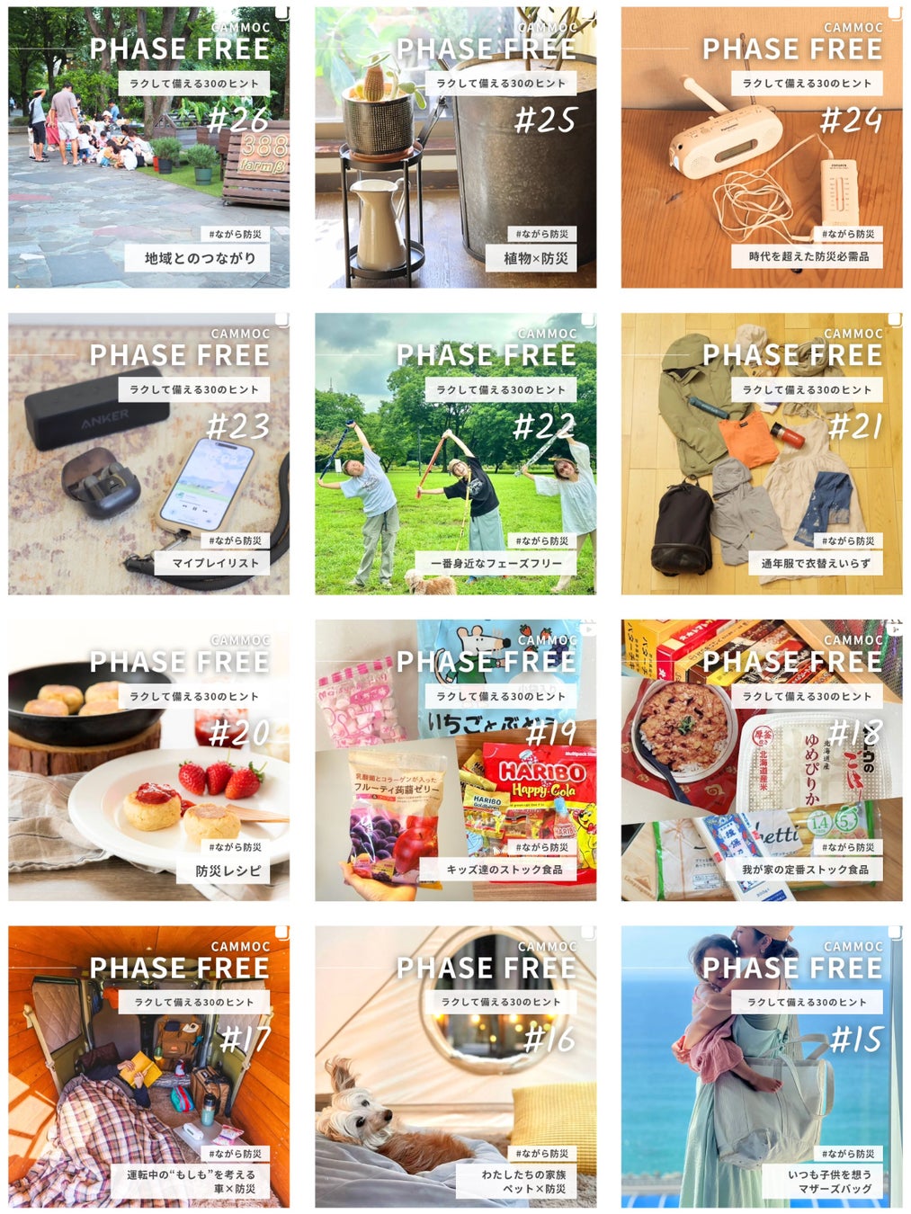 書籍でも紹介しているながら防災のヒントを、Instagram(@cammoc)でも公開中です。