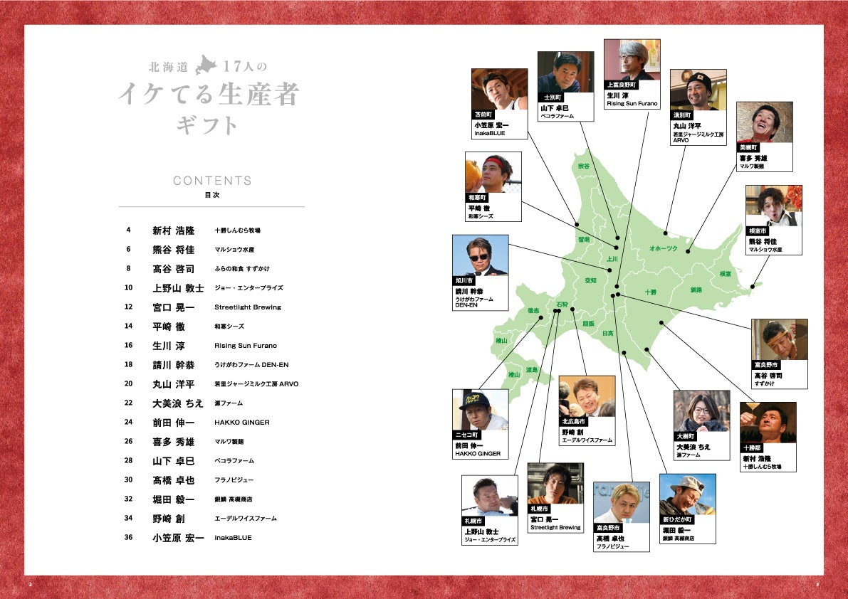 17人それぞれテーマをもって取り上げています。商品紹介だけでなく、遊び心満載の写真と共に、各生産者の生き様や仕事への情熱、そして背景にあるストーリーを紹介しています。商品を選ぶ際に生産者の思いを感じ取り、贈る方も受け取る方も生産者のイケてる姿を存分に感じられる内容となっております。