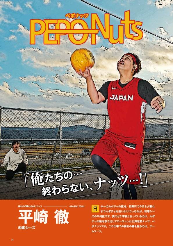 日本一のかぼちゃの生産地、和寒町でかぼちゃのナッツから作る加工品「ペポリ」を生産するのは和寒シーズの「平崎 徹さん」です。バスケ好きの子供たちのために自宅にバスケコートを作ってしまうほどのバスケ好き。かぼちゃでレイアップシュートを決めてもらいました。