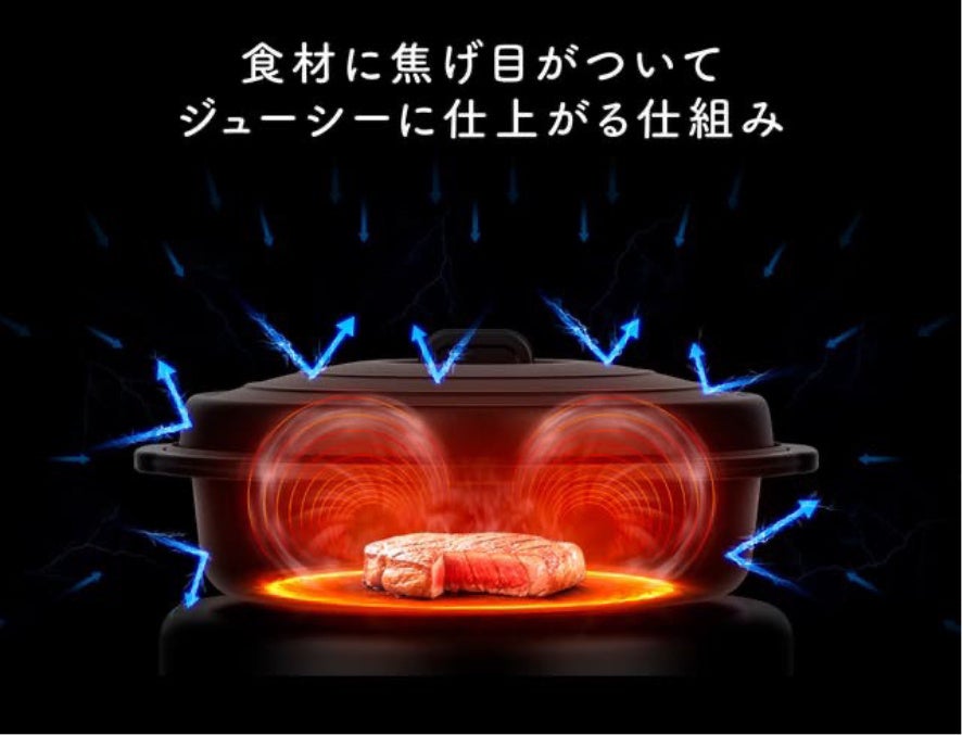 機能で焼き調理から煮物まで多彩な料理が可能な電子レンジ調理器です。電子レンジとRANGE STORMがあればコンロは不要。火を使わずに電子レンジで焼き魚やステーキなどの焼き調理が可能に。