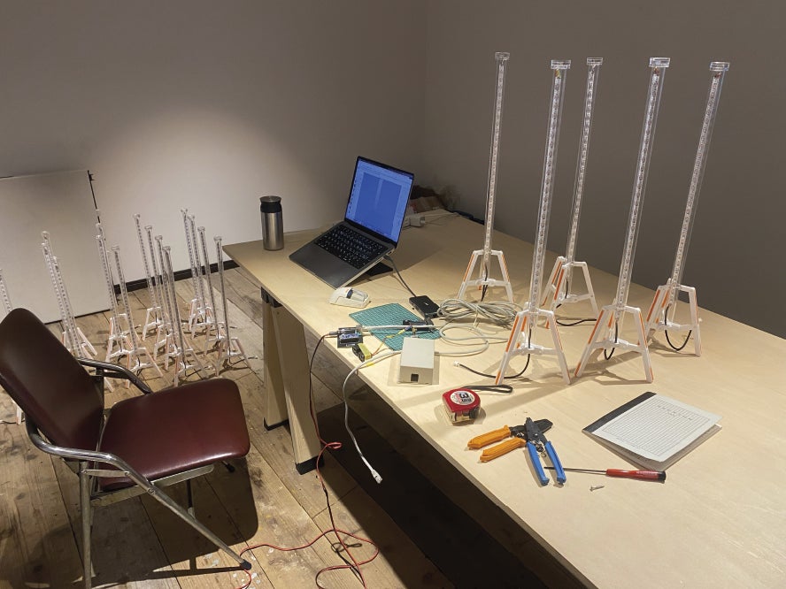 広島県横川エリアでのアーティスト・イン・レジデンスの滞在プログラム通した制作風景を展示。プログラミングによるソフトウェア開発や、電子工作のハードウェア技術、3Dプリンタなどのデジタルファブリケーションなど、様々なプロトタイピング(試作)方法による作品過程と滞在制作によって生まれる街の人々との交流の様子をみることができます。