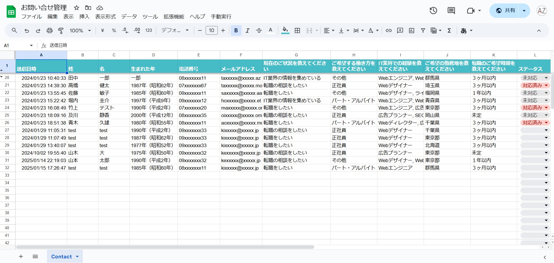 応募者の急増にも対応できるよう簡易DBをGoogleスプレッドシートも構築