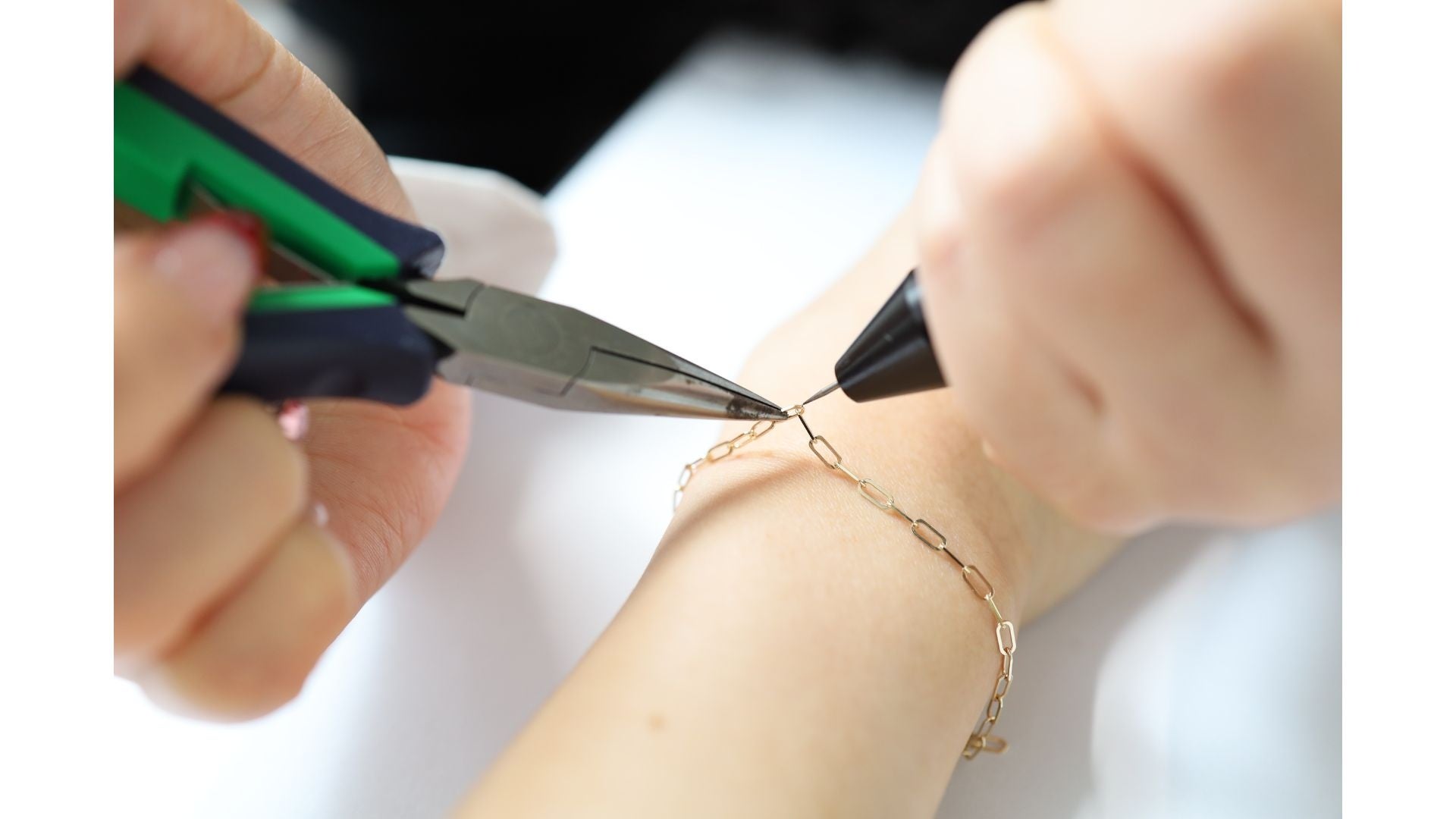 パーマネントジュエリー(Permanent Jewelry)は、取り外さないアクセサリーとして、ニューヨークを始め、近年ファッション業界で注目を集めているジュエリーのトレンドです。ゴールドやプラチナのチェーンを留め金ではなく、金属同士を専用の機材で溶接するため、文字通り「永遠に」肌身離さず身につけられる、お守りのようなジュエリーです。友人や家族、恋人との大切な絆を感じることができると、特に若い世代や TikTok など SNS を通して人気を博しています。