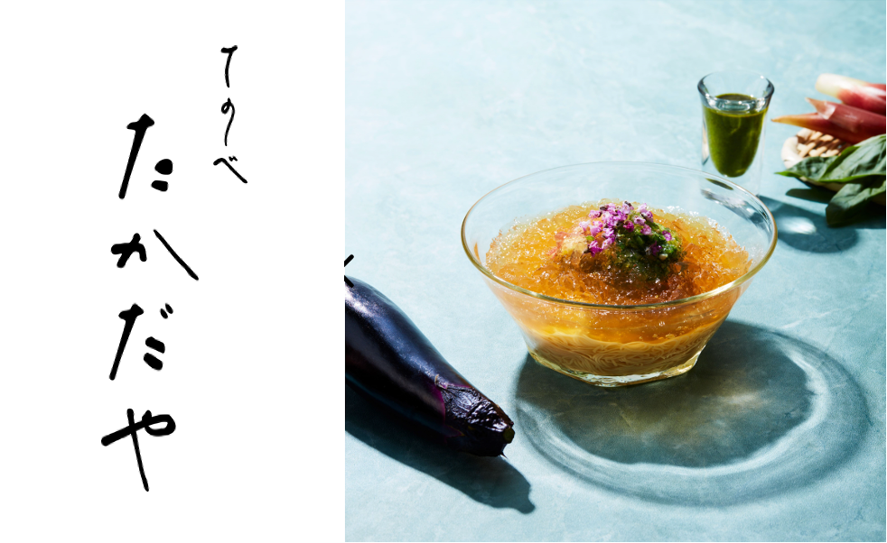 素麺のおいしさを引き立てるスープや、味・食感をより楽しむための新しい食べ方を提案する「てのべたかだや」では、大和・三輪の地で手延素麺が生まれ、以来連綿と続く千二百年の歴史を受け、夏だけではない四季を通じてお楽しみいただける素麺の革新に挑戦しています。