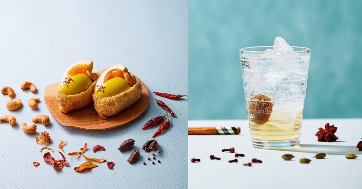 ゴーヤとみょうがを混ぜた酢飯に、数種のスパイスとしょうがを効かせた味玉を合わせて。