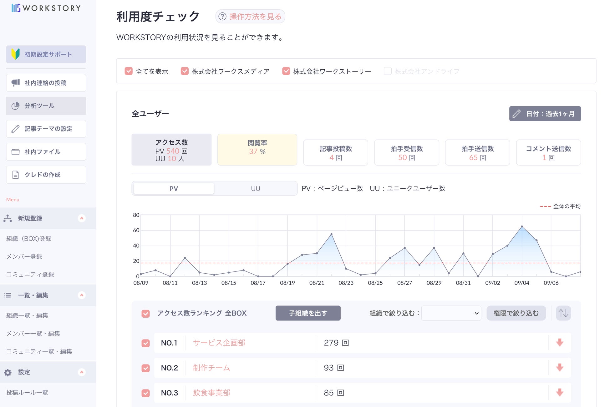 WORKSTORYは、『企業の一体感作りやモチベーション管理を楽にする』一体感醸成プラットフォームです。