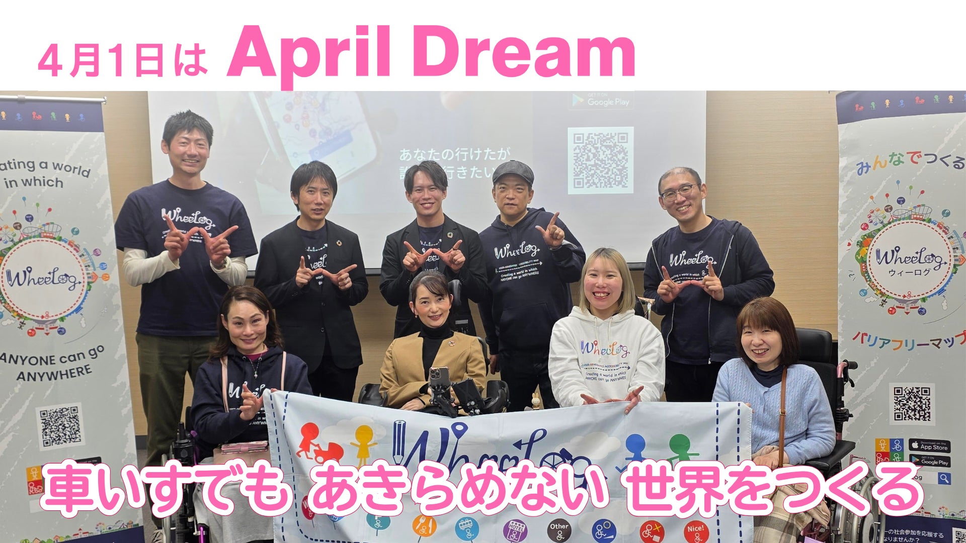 みんなでつくるバリアフリーマップアプリ「WheeLog!(ウィーログ)」を開発運営する特定非営利活動法人ウィーログ(所在地:東京都千代田区、代表理事:織田友理子)は、4月1日を夢を発信する日にしようとするApril Dreamに賛同しています。このプレスリリースは「ウィーログ」の夢です。