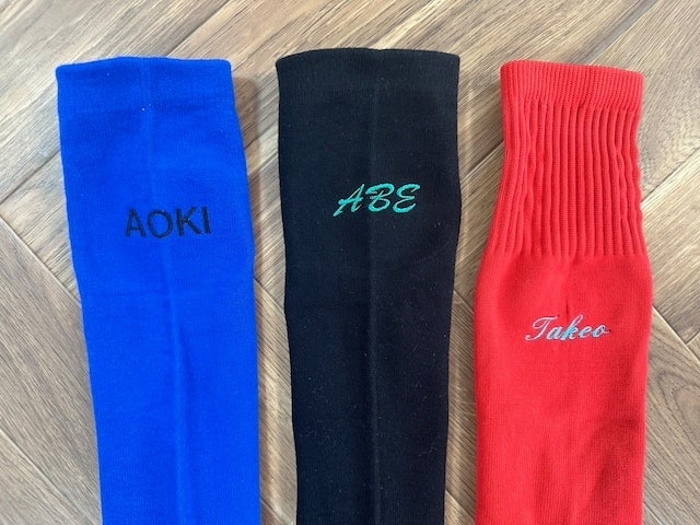 また、本製品の製造過程では障がい者が仕事として携わっています。袋詰など軽作業の他、オプションサービスの背番号や名前などのオリジナル刺繍を1足ずつ丁寧に仕上げています。刺繍オプションは1足330円(税込)から承っており、その売り上げは障がい者のお給料(工賃)として支払われます。