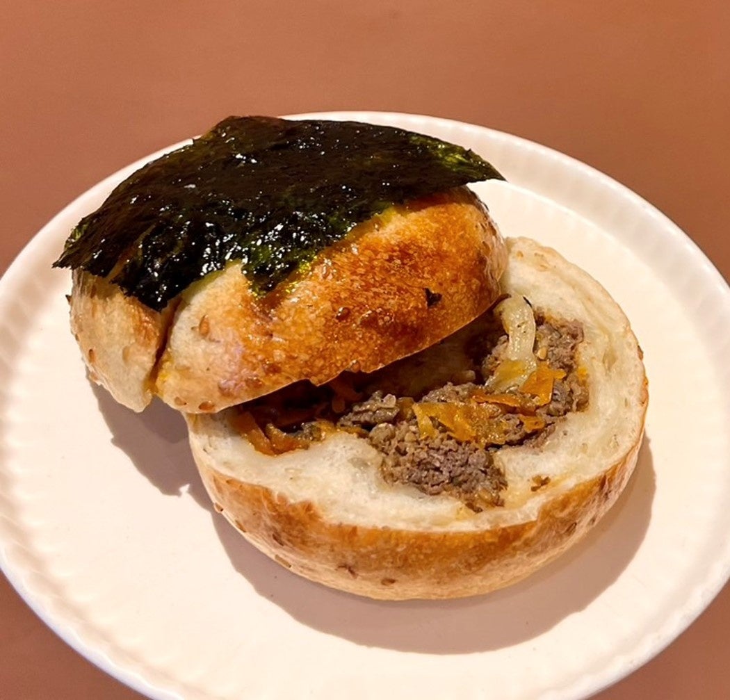 1周年記念限定メニューとして韓国料理のキンパをベーグルにアレンジしました。韓国のりをトッピンググし、お肉などの具材もたっぷり!