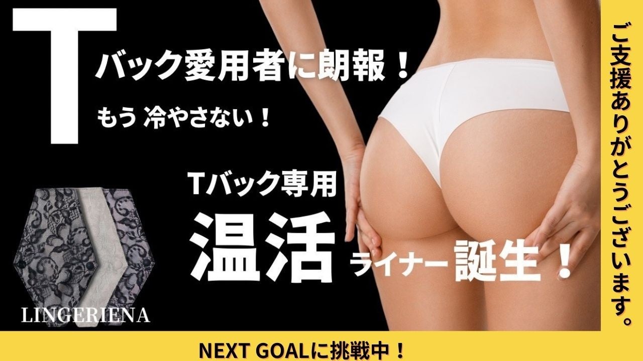 【Tバック専用ライナー】で温活ができるという画期的で今まで想像もしえなかった新しいプロダクトの可能性を後押しして下さる皆様に感謝し、終了日までのNEXT GOAL を1,000,000円に設定。