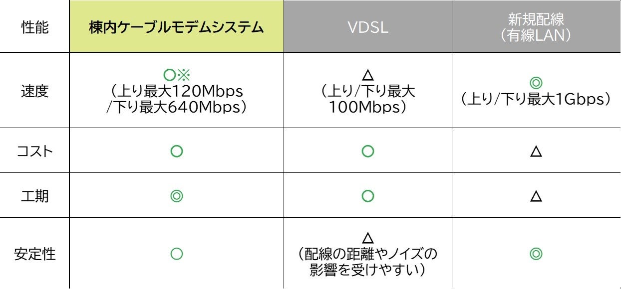 今やインターネットは生活に欠かせないものとなり、安定した高速通信環境の有無が住居を選ぶ際の 要素のひとつになっています。しかし、既設の集合住宅やホテルなどでは新たに高速インターネット