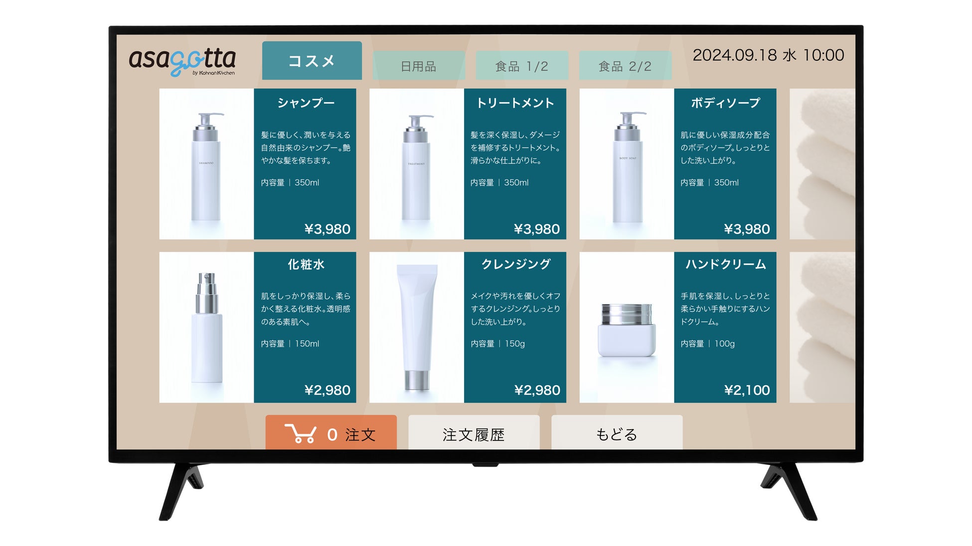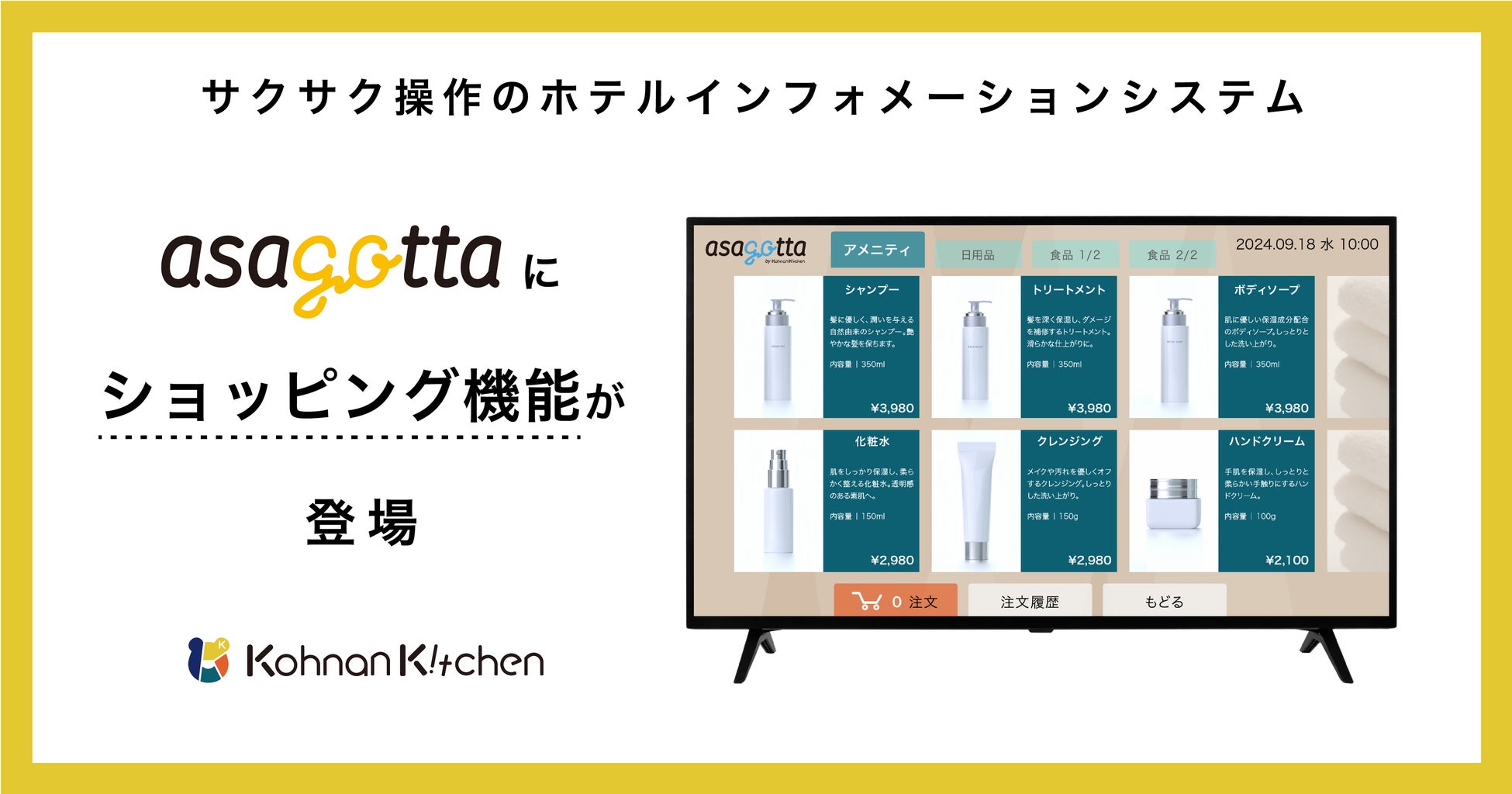合同会社甲南キッチン(兵庫県神戸市、代表社員:砂田祥平)は、ホテルインフォメーションシステム「asagotta」のオプション機能として、新たにショッピング機能を開発しました。