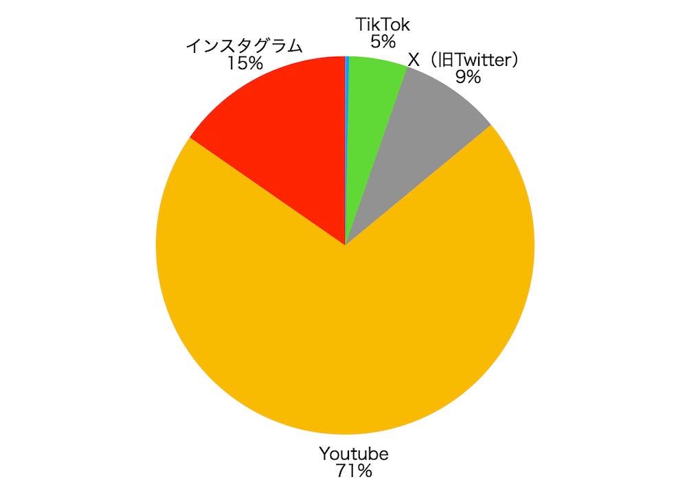 結果としては、Youtubeで見かける割合が71%で一番多いという結果になりました。