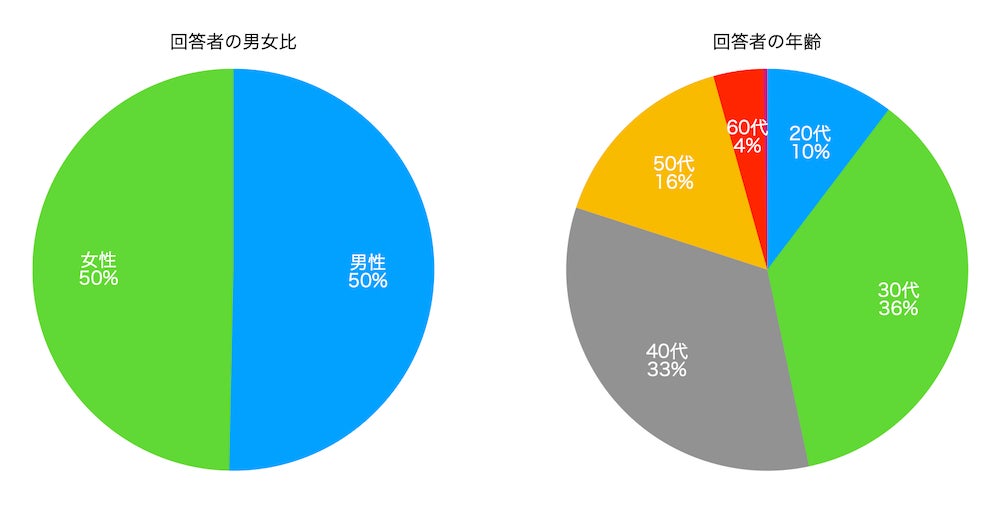 回答者の男女比はほぼ半々になり、年齢層は30代・40代が多く回答いただきました。