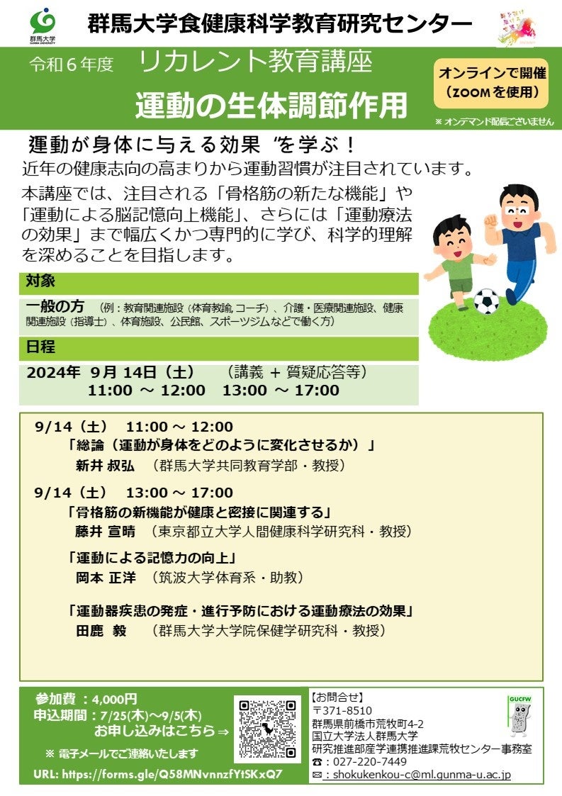 “運動が身体に与える効果”を学ぶ 【オンライン開催】群馬大学リカレント講座『運動の生体調節作用』
