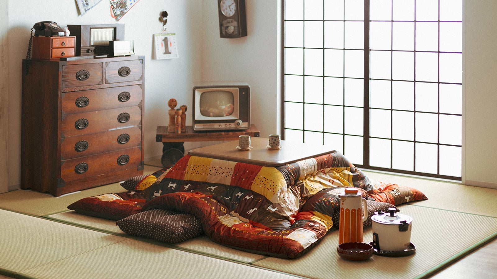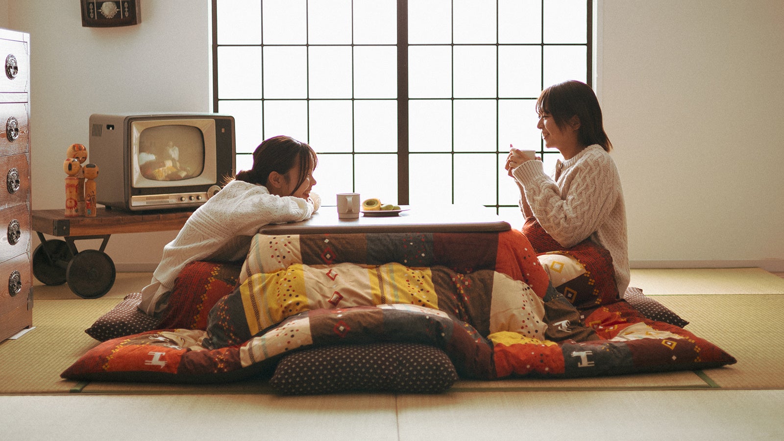 お茶の間計画では、第一弾として昭和時代を思い起こさせるレトロなイメージのこたつセットや座布団などをご用意しました。今後も自然素材を使用したインテリアを取り揃え、家族や友人が「しぜんとあつまる」場所をデザインしてまいります。