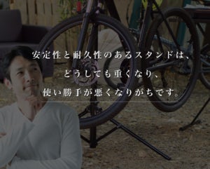 電動自転車をはじめとした重い車体にも耐えるためにはスタンド自体にも一定の重量が求められます。一方で、重くなったことにより使いやすさが下がってしまうというのがこれまでの課題でした。