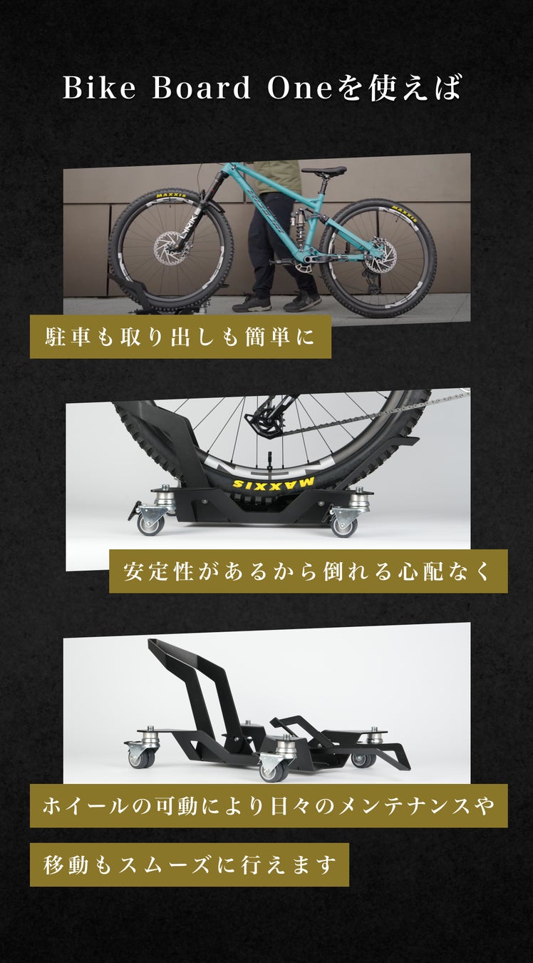 Bike Board Oneは自転車を心配なく止めておくことができ、日々のメンテナンスやちょっとした移動の際にも難なくお使いいただけます!