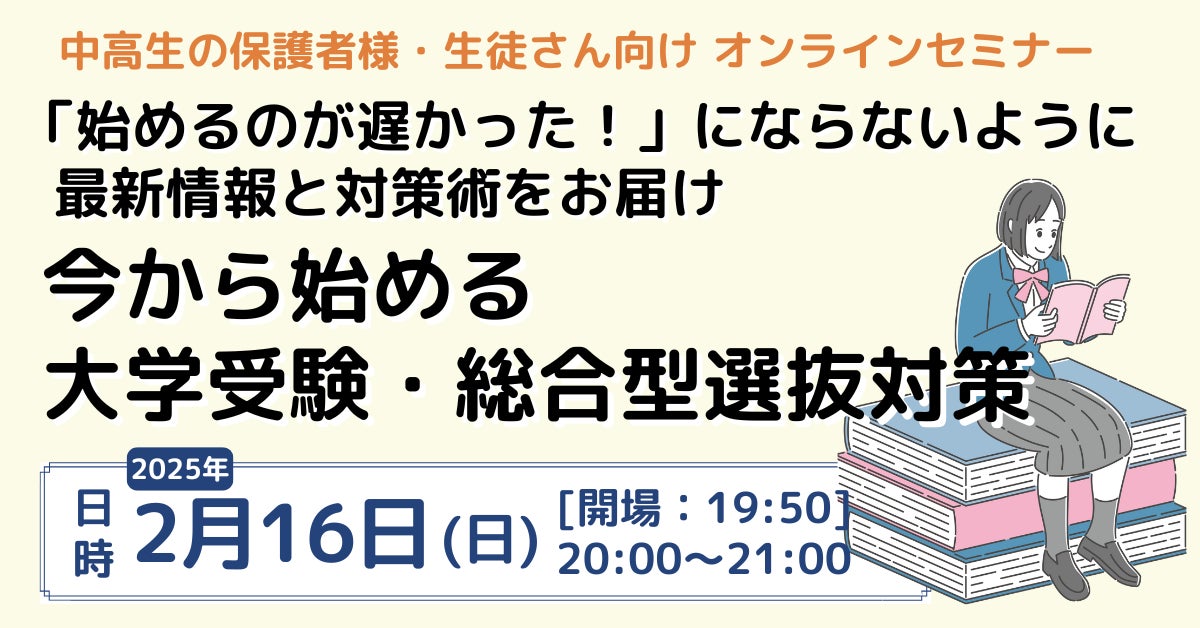 「始めるのが遅かった!」とならないように大学受験の最新情報と早めの対策を学ぶ!無料オンラインセミナーを2/16(日)開催