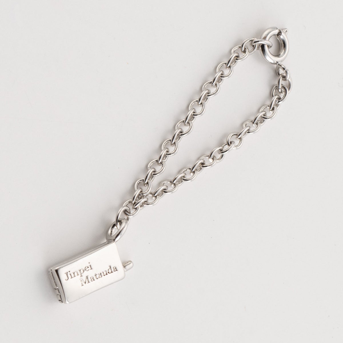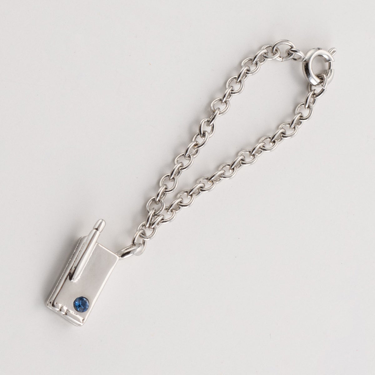 松田陣平が萩原研二と会話を交わした折りたたみ携帯です。瞳の色をイメージしたロイヤルブルーに輝くクリスタルガラスは萩原研二からの着信をイメージしました。裏面には松田陣平の名前が刻印されています。