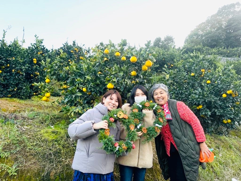 愛媛県 宇和島:80年続く花屋の3代目がナビゲート!みかん山でドライフルーツのリース作り