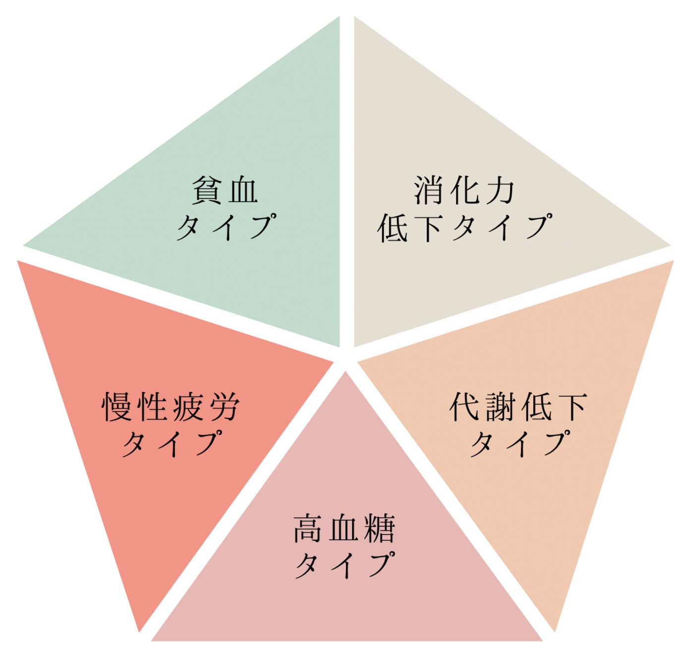 上記5つのタイプから消化力低下タイプ、高血糖タイプ、慢性疲労タイプをご紹介します。