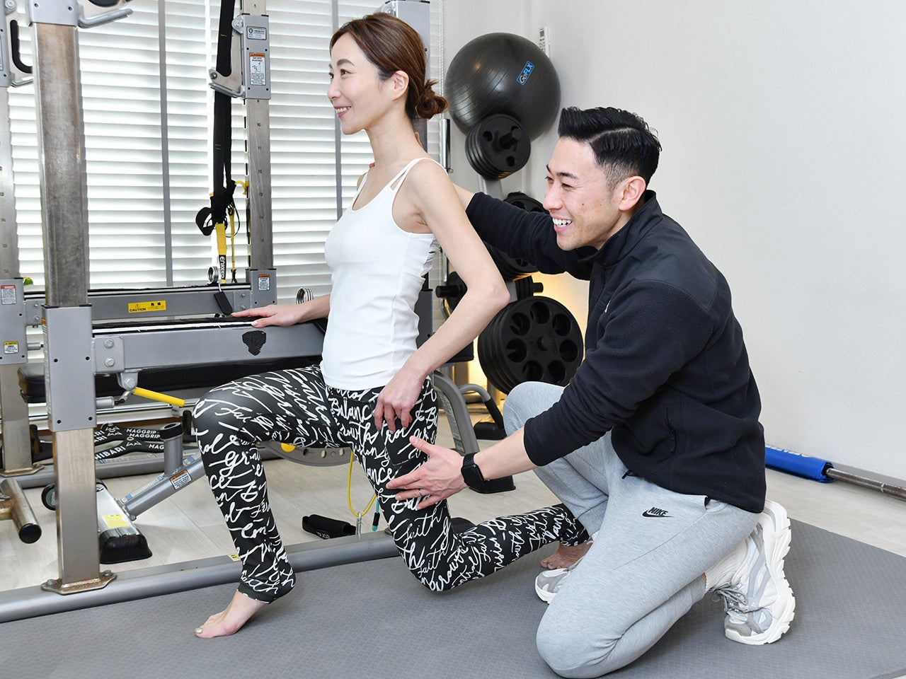 また、運動はウエイトトレーニングではなくピラティスやストレッチをベースとした呼吸中心のトレーニングを行い、段階踏んで自重のトレーニングや軽重量のトレーニングを行っていき健康的な体作りのサポート致します。