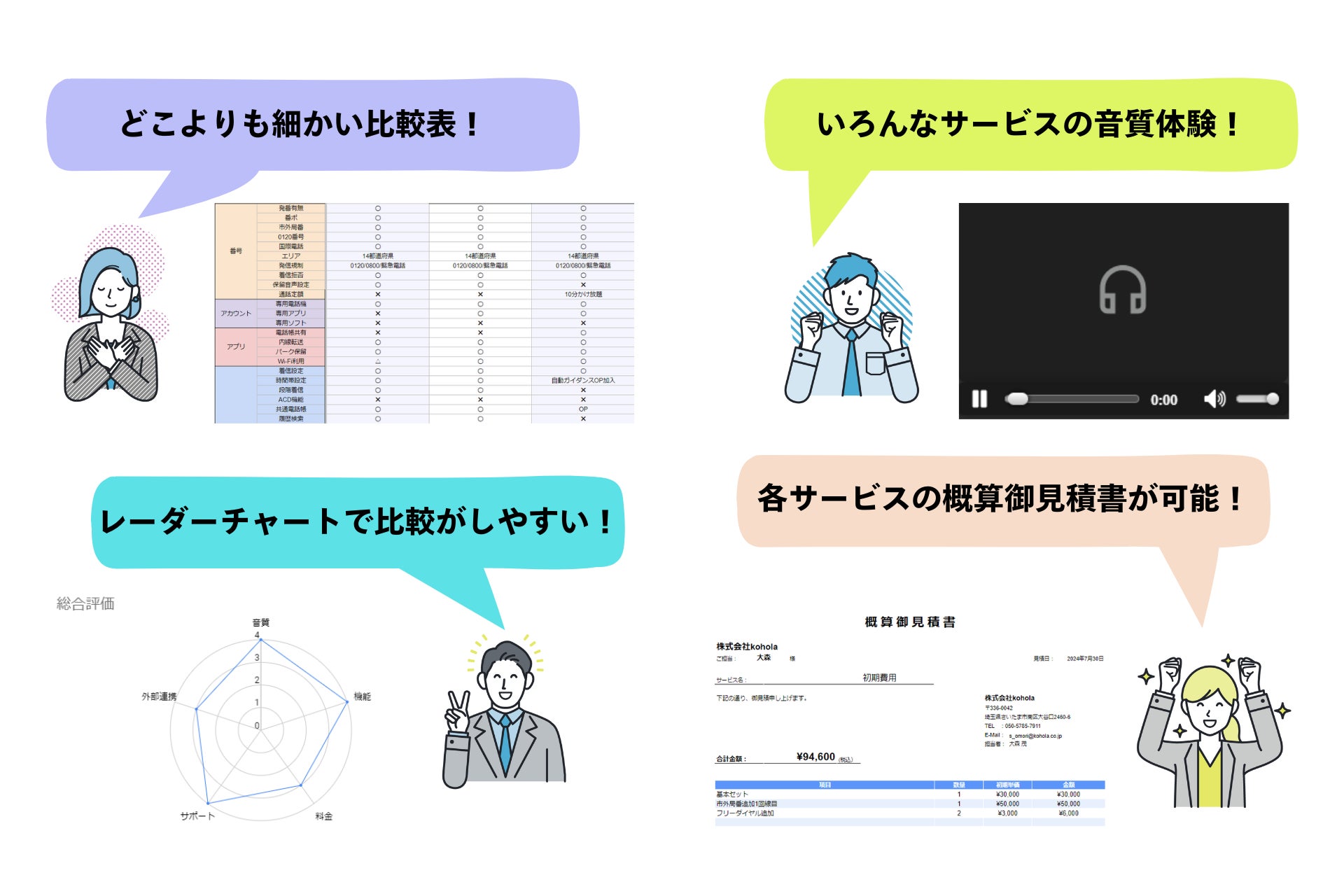 ・各社の 通話音声録音データにて音質体験が可能