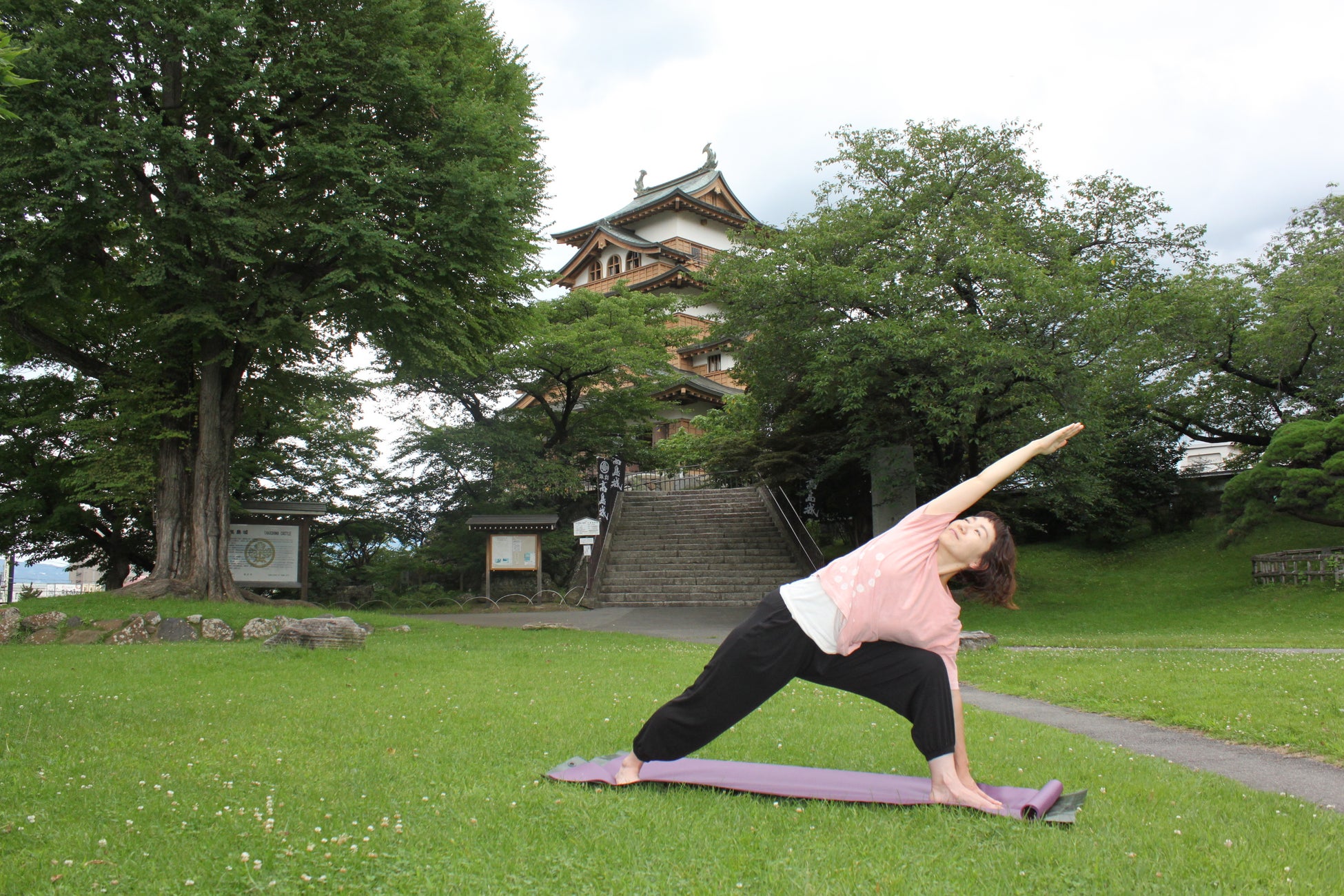 諏訪大社上社本宮 奉納ヨガ、高島城のお城ヨガ、温泉寺のお寺ヨガ
