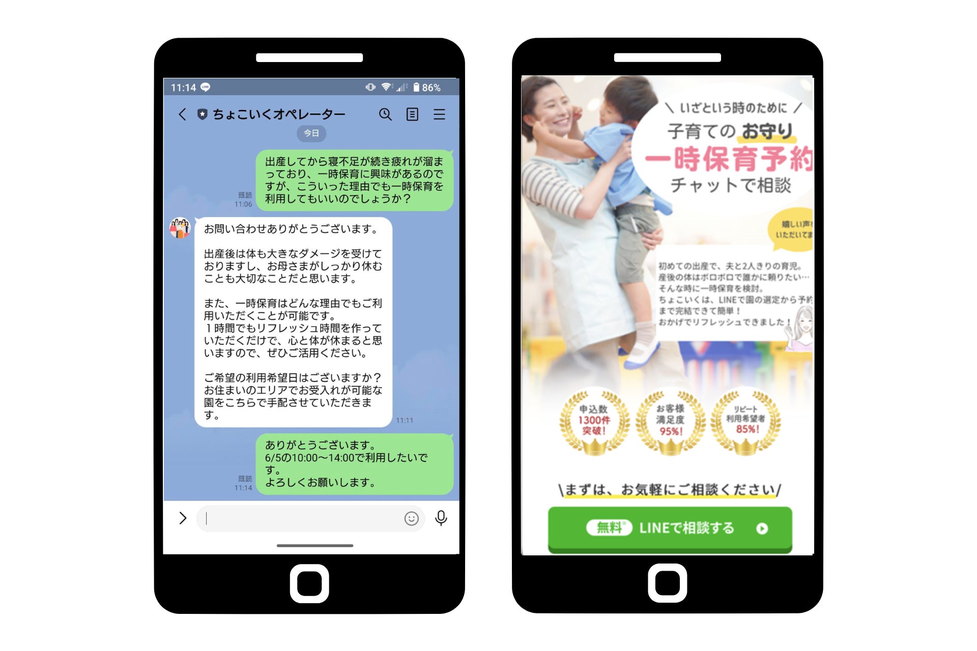 LINE上で簡単・便利に一時保育の利用を申し込むことができる一方で、担当オペレーターが一時保育先を探すところからご予約まで、お一人お一人のご要望をお伺いしながら、安心・安全なお子さまの預け先の確保いたします。