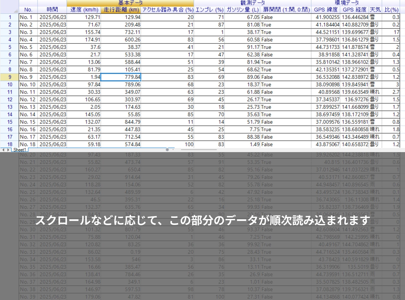 新機能「遅延ロード(Lazy Loading)」を搭載し、数百万行規模の大規模データでもスムーズに初期化・描画が可能になりました。