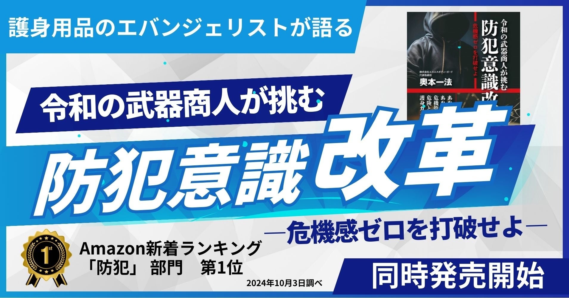 護身用品のエバンジェリストが語る『令和の武器商人が挑む 防犯意識改革 ―危機感ゼロを打破せよ―』が、9月20日よりPOD書籍および電子書籍でAmazon他オンラインストアにて同時発売開始