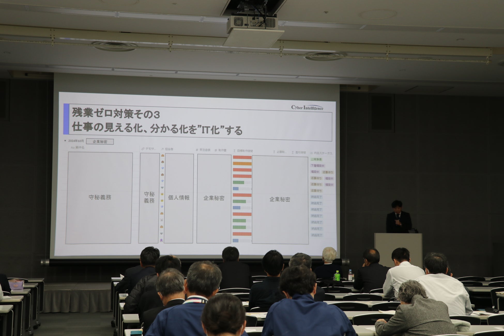 もっとも重視したのは、サイバーインテリジェンスが得意とするITを駆使した業務効率の改善です。ITツールを活用して案件ごとの進捗状況を「見える化」し、全社員が誰が何をどう進めているのかを一目で「わかる化」することでした。