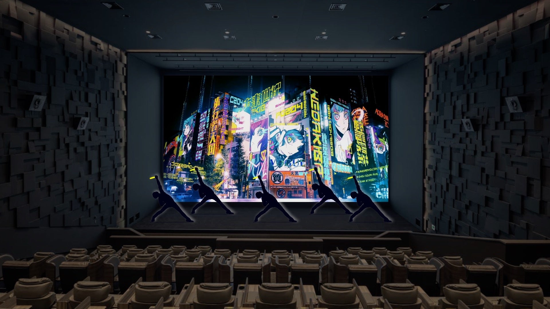 舞台は『バーチャル歌舞伎町』。109シネマズプレミアムの高精度スクリーンに映し出される近未来の歌舞伎町をイメージした背景をバックに、VTuberによる歌唱×ヲタ芸パフォーマンスが披露されます。ヲタ芸パフォーマンスでは実際にゼロ打ちメンバーがスクリーン前で大迫力のヲタ芸を披露するのみならず、スクリーン内に入り込んでヲタ芸を披露する『バーチャルゼロ打ち』も劇中で登場。映像とリアルパフォーマンスの融合により、これまでにない没入感で世界に誇る日本のカルチャーを肌で感じることのできるイベントとなっています。