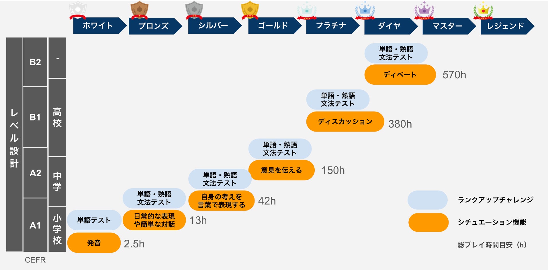 「あと何時間で日常会話ができるようになる」など、目標までの進捗が可視化され、成長を実感しやすくなっています。 -