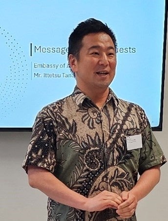 セレモニーの中で、ご来賓である在インドネシア日本国大使館の一等書記官・田中氏からは、「日本では人材不足が深刻化しており、外国人労働者の受け入れが不可避です。特にインドネシアは人口増加が続くため、日本にとって重要な人材供給国となります。今般、貴社にジャカルタのテストセンターを増設していただいたことは、より強固な両国関係に資するものであり、心より感謝申し上げます」。と述べられました。