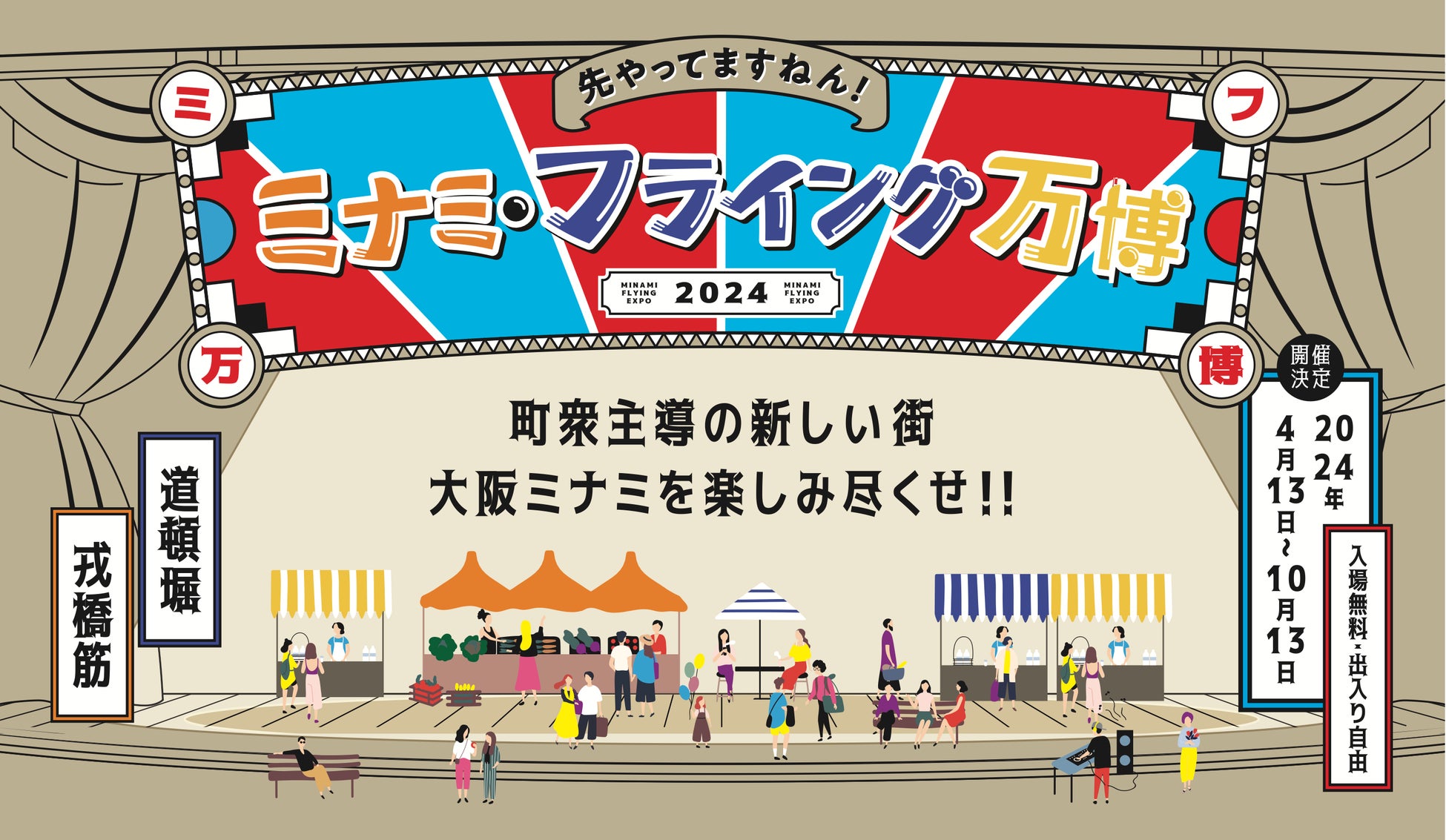 「先やってますねん!ミナミ・フライング万博2024」は、EXPO2025大阪・関西万博の開幕1年前の2024年4月13日(土)から10月13日(日)までの期間、道頓堀・戎橋筋・なんば広場を中心とする大阪ミナミの公共空間を活用し、町衆主導のさまざまなイベントで街全体を盛り上げていくプロジェクトです。この立ち上げに伴い、大阪ミナミに位置する2つの商店街「道頓堀商店会」「戎橋筋商店街振興組合」および「なんば広場」の公共空間に隣接する団体がタッグを組み、「NDK連絡会」を発足。万博をフライングして街なかで“おもろいこと”を展開していきます