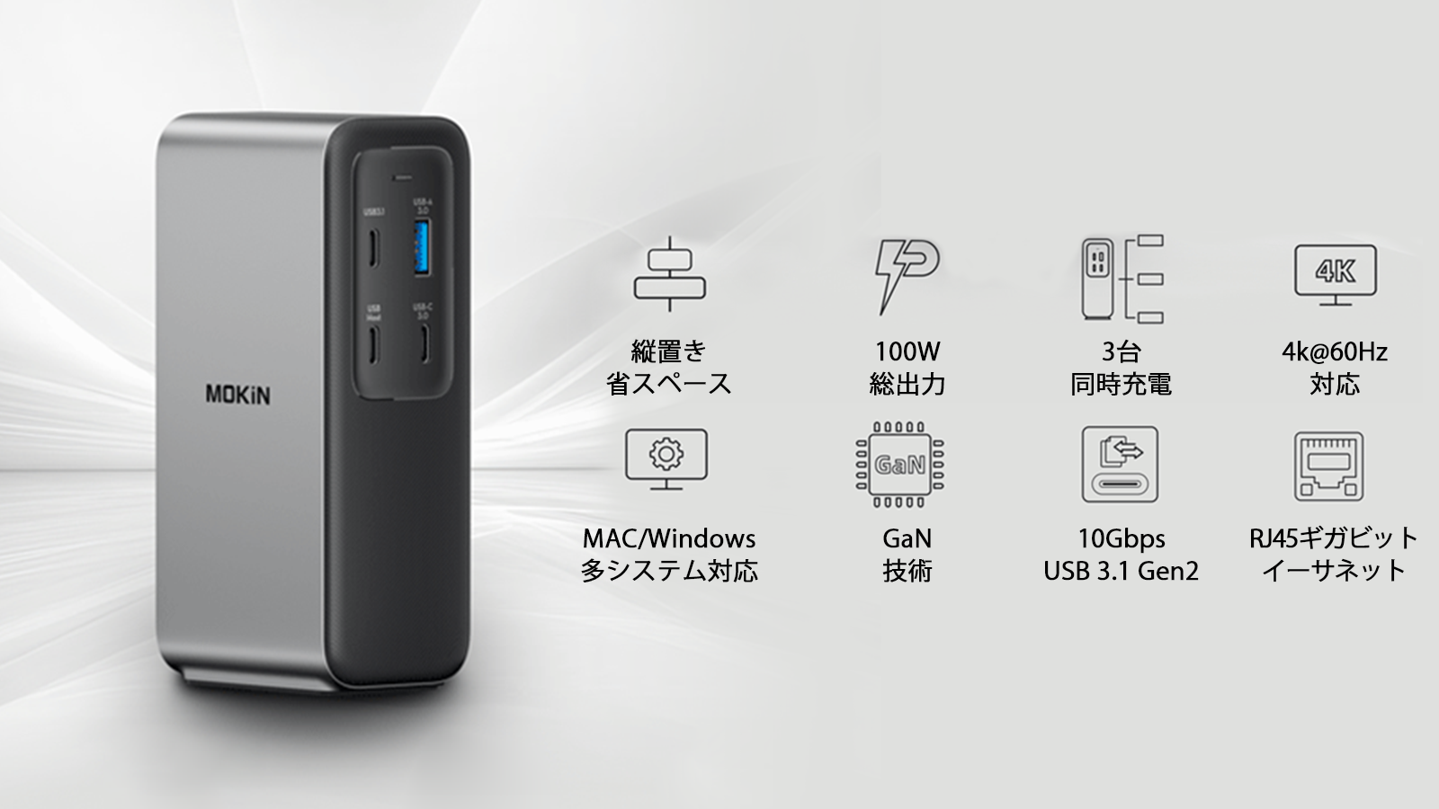 PD100Wで10Gbps超高速データ転送を実現!多機能充電ドック「MOKiN」日本上陸