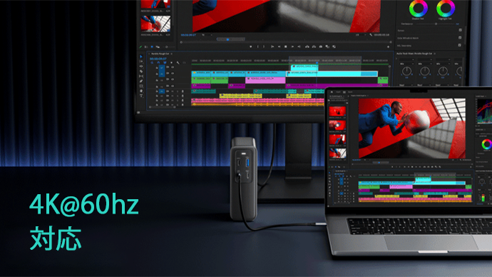 従来の充電デバイスとハブの制限を突破し、充電・高速データ転送・HDMIポート・1000Mbpsイーサネット、4つの機能を一体化にました。これで、ケーブルでいっぱいになって散らかった机から解放され、仕事効率の向上が図れます。
