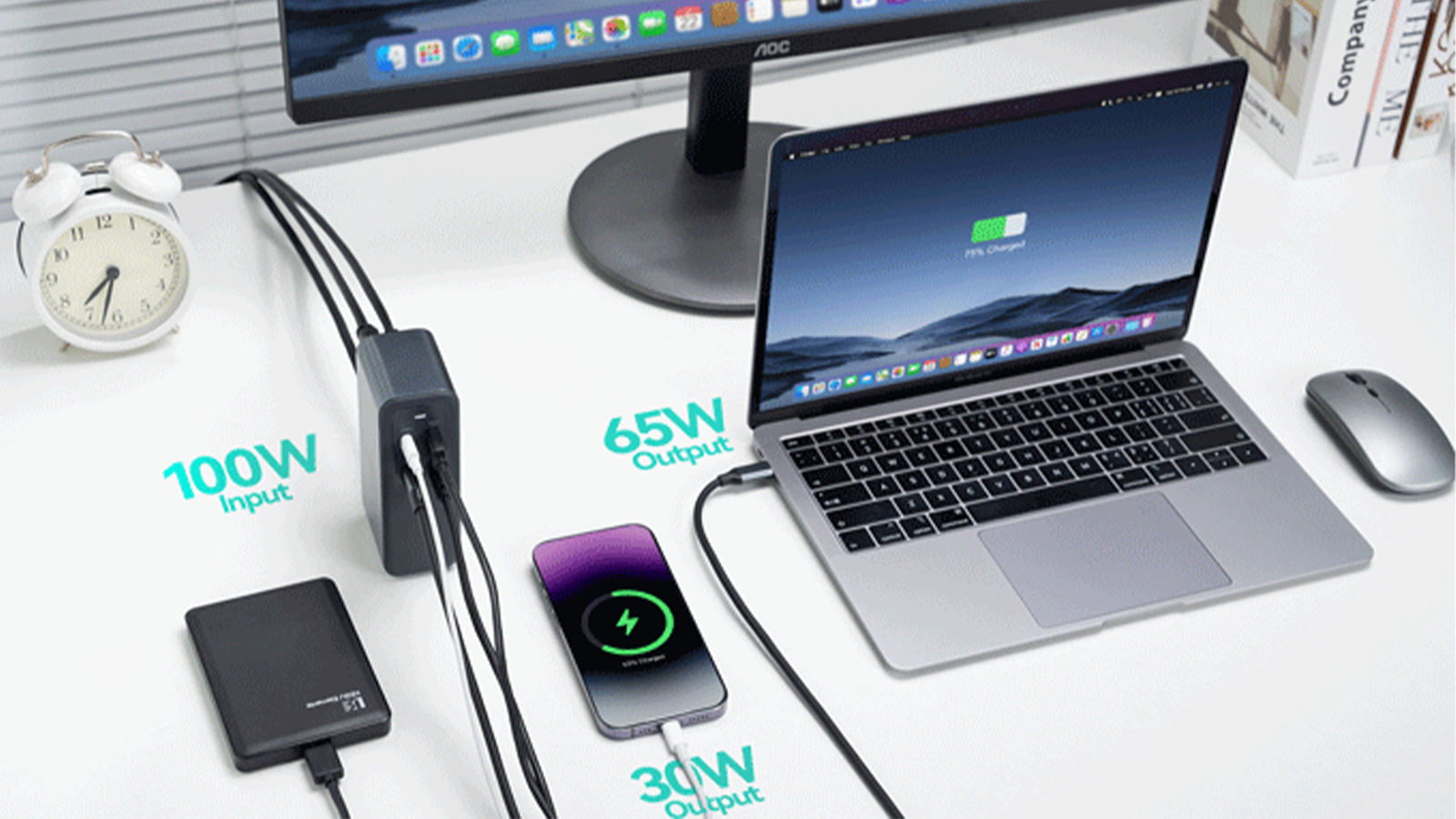 複数のデバイスを同時に充電することが可能、最大出力が100Wに達します。