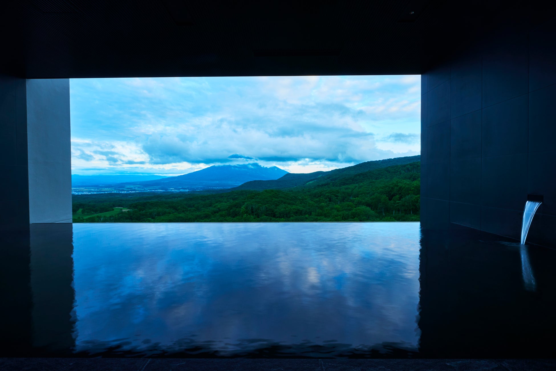 天然温泉の大浴場は目の前に佇む羊蹄山をピクチャーフレームに収めたような印象的なインフィニティ温泉です。山へ突き出した浴槽からは、雪の音や、月明かりと澄んだ空気を全身で感じられます。敷地内から沸く温泉は、無色無臭のナトリウムー炭酸水素塩・塩化物温泉で、心身のこわばり、筋肉疲労、疲労回復などに効くとされています。