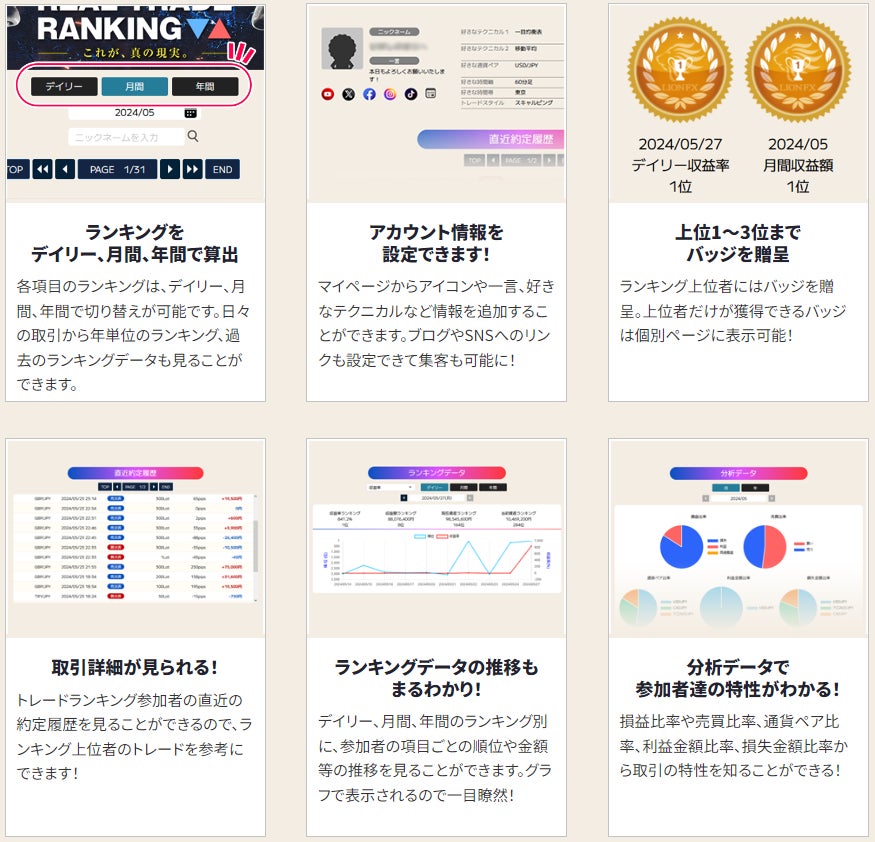 ランキングを知ることで他のユーザと比較して自身のトレードが上手くいってるか等を確認することができます。
